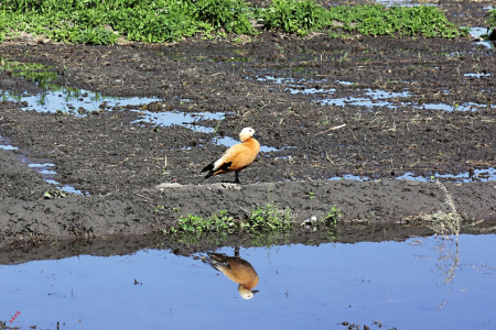隨著生態(tài)環(huán)境向好、水位上升和近期氣溫回暖,多年未出現(xiàn)的中華赤麻鴨也現(xiàn)身赤橋村,時而在水塘邊覓食,時而在稻田里嬉戲。遠處鳥群凌空盤旋,鳥鳴聲不絕于耳,旋耕機在稻田來回穿梭,映著青綠山色,構(gòu)成一幅生機盎然的和美鄉(xiāng)村畫卷。