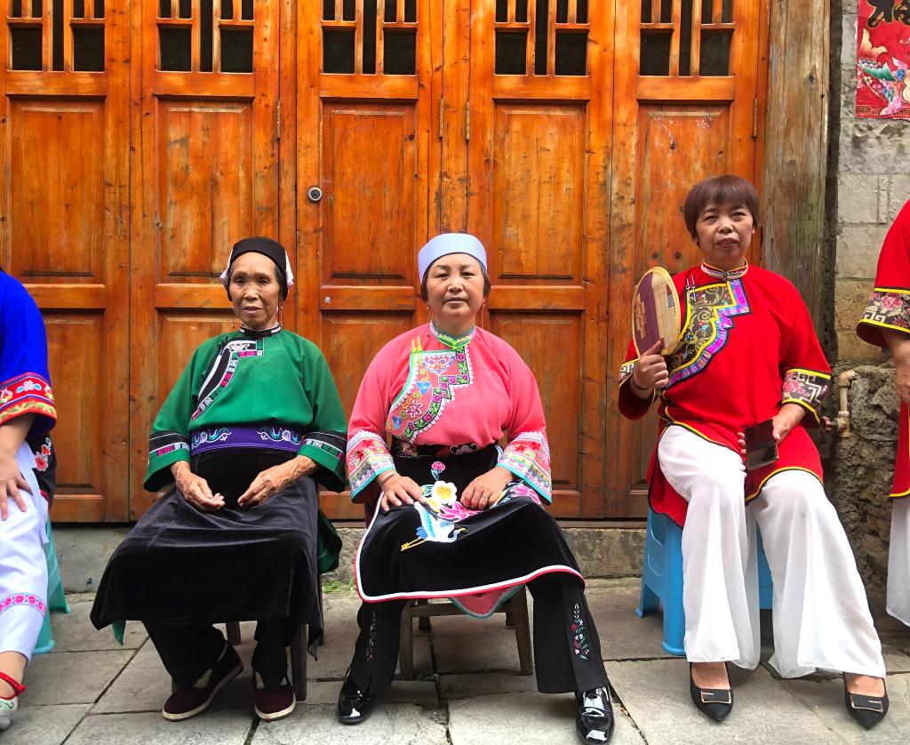 舊州古鎮(zhèn)婦女穿著傳統(tǒng)服飾鳳陽(yáng)漢裝。新華社記者 李凡 攝