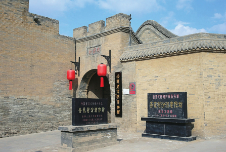 “杏花村汾酒老作坊建筑群是寶泉益、義泉泳、晉裕汾酒公司時期釀造廠舊址,占地面積9000平方米,房屋50余間,分列街道兩旁?!睋?jù)講解員介紹,杏花村汾酒老作坊是目前唯一一座保存完好且至今還在產(chǎn)酒的白酒老作坊,是全國白酒老作坊中歷史最悠久、保存最完整、遺存面積最大、組成要素最全、對白酒發(fā)展影響最大的名酒遺址。