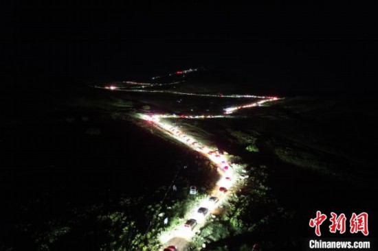 凌晨1點(diǎn)的夜空中掛滿星星,罕山上也“掛”滿了人。排隊(duì)上山的越野車綿延數(shù)公里,陡峭的盤山公路在車燈照射下宛若游龍。騎摩托的、步行上山的人也不少,偶爾還能看到騎馬的。