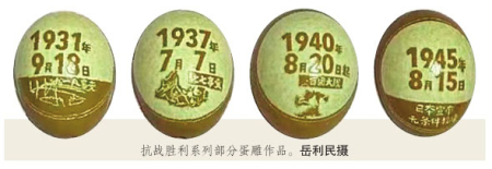該系列作品遴選了“九一八事變”“七七盧溝橋事變”“百團大戰(zhàn)”等12例抗戰(zhàn)歷史事件作為蛋雕素材,經(jīng)過20余天的構思與精雕細刻,岳利民讓他的“家國情懷”成為了國家記憶的一部分。
