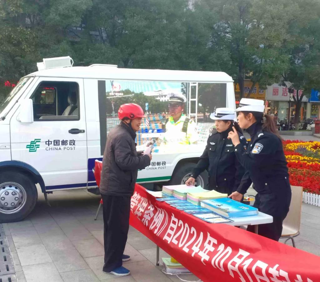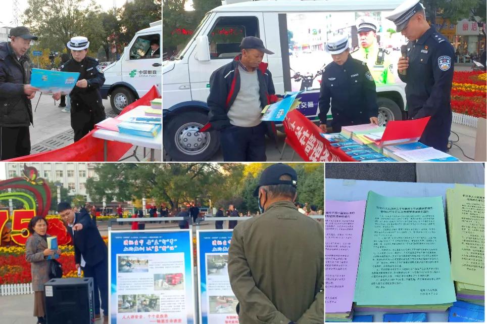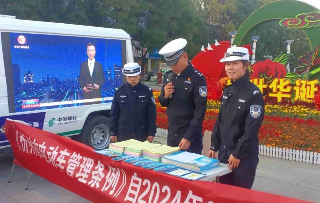 在人頭攢動的廣場上,“一盔一帶”宣傳展板、警郵直播車大屏幕吸引了過往群眾駐足觀看。“大媽,新修訂的《忻州市電動車管理條例》已于本月1日起開始施行,您知道嗎?”“大叔,您這舊的電動自行車要抓緊時間登記備案、辦理臨時牌照,咱忻府區(qū)24個警郵合作電動自行車便民登記服務網點都能辦理過渡期臨牌”“騎乘電動自行車必須要佩戴安全頭盔,不能闖紅燈、逆行......”