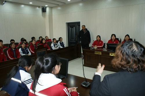 在干警的指導下,同學們模擬庭審現(xiàn)場,從審判長、審判員到公訴人、辯護人、被告人等,大家紛紛扮演起了不同的角色。