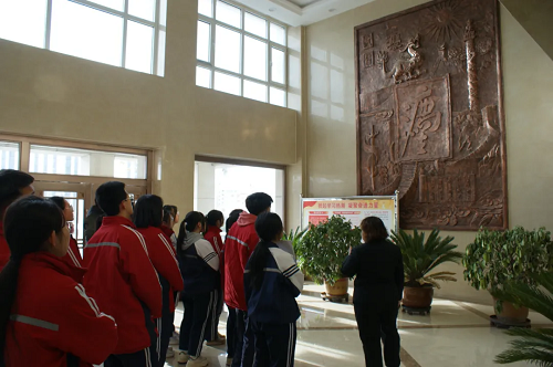 “同學們,這是繁體字‘灋’,由三個要素構(gòu)成,左半部分是‘水’,右上角是‘廌’,右下角為‘去’。水象征著法律的公平與正義,廌也叫‘獬豸’,它是一種一只角的神獸,能夠分辨人間是非……”法院干警為同學們耐心講解浮雕墻的細節(jié),佇立聽講,頻頻點頭中,小小的“法治”種子也在此刻生根發(fā)芽。