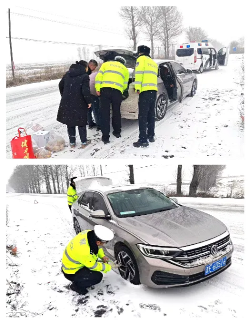 寒風(fēng)凜冽,大雪紛飛,你們卻起早貪黑,從未有過(guò)絲毫懈怠。每一個(gè)清晨,當(dāng)人們還在溫暖的被窩中時(shí),你們已奔赴道路,指揮交通;每一個(gè)深夜,在萬(wàn)家燈火映照下,你們的身影仍在街頭佇立。為了讓返鄉(xiāng)出行的人們安全回家過(guò)年,你們?nèi)檐囕v保駕護(hù)航。遇到受困的車輛與人員,你們毫不猶豫地伸出援手,推車、除雪、提供應(yīng)急物資,用真誠(chéng)與過(guò)硬作風(fēng),書寫著警民和諧的動(dòng)人篇章。