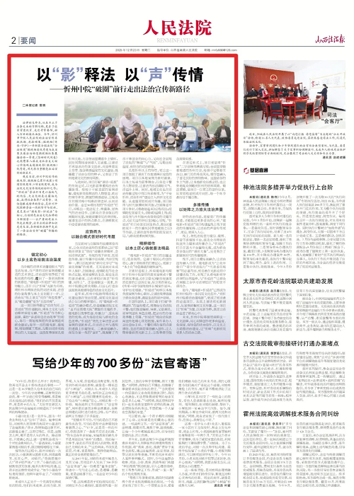 線下,項目注重場景融合,讓法治宣傳融入日常。微電影成為“公眾開放日”“青少年法院行”“代表委員視察”的必備內容,到訪者在光影流轉中讀懂法院工作,實現(xiàn)了從看電影到學法律的自然延伸,與“忻說法”“讓群眾在閑暇之余學習法律知識”的初衷不謀而合。