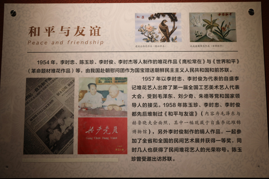然而,歷史的波瀾并未停止。中華人民共和國成立后,堆花藝術(shù)經(jīng)歷了從繁榮到衰落,再到復(fù)興的曲折歷程。在黨和政府的關(guān)懷下,老一輩堆花藝人積極響應(yīng)號召,成立堆花小組,將堆花藝術(shù)服務(wù)于國家建設(shè)和人民生活。抗美援朝期間,堆花作品作為國寶贈予朝鮮,見證了中朝兩國人民的深厚友誼。