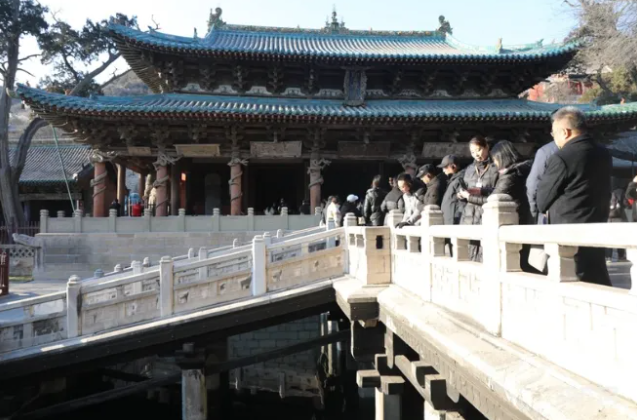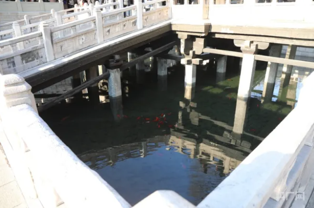 中國最早的水陸立交橋——魚沼飛梁。魚沼飛梁西依圣母殿,東鄰獻(xiàn)殿,初建在北魏之前。飛梁的形式古樸,橫跨于魚沼之上,借以觀賞景物,南北東西四面伸長,如鳥之振翼欲飛狀,是中國少有的一種十字橋梁形式,被譽為中國最早的水陸立交橋。