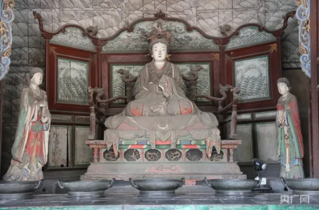 宋代建筑代表作——圣母殿。圣母殿是晉祠的主殿,創(chuàng)建于北宋天圣年間。殿面闊七間,進(jìn)深六間,重檐歇山頂,黃綠色琉璃瓦剪邊,殿高19米,大殿檐柱側(cè)角升起明顯,給人以穩(wěn)重之感,殿內(nèi)外采用“減柱法”,以廊柱和檐柱承托殿頂梁架,擴大了殿內(nèi)空間。圣母殿基本上遵照了《營造法式》的定制,表現(xiàn)了北宋的建筑風(fēng)格和審美意識,為我國古建國寶。