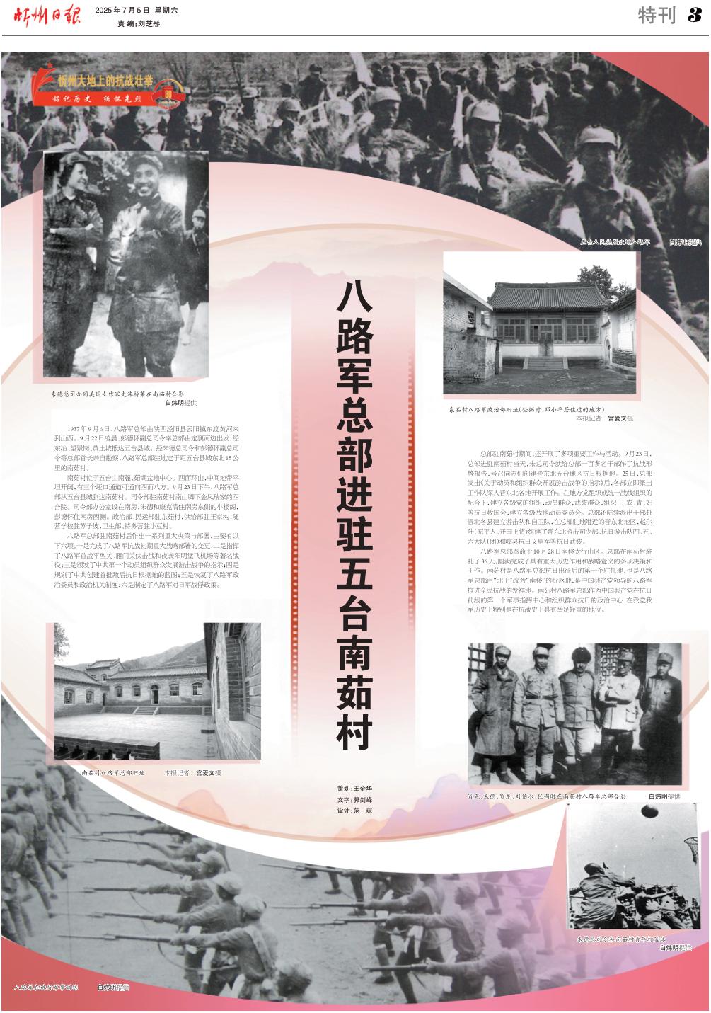 1937年9月6日,八路軍總部由陜西涇陽(yáng)縣云陽(yáng)鎮(zhèn)東渡黃河來(lái)到山西。9月22日凌晨,彭德懷副總司令率總部由定襄河邊出發(fā),經(jīng)東冶、望景崗、黃土坡抵達(dá)五臺(tái)縣城。經(jīng)朱德總司令和彭德懷副總司令等總部首長(zhǎng)親自勘察,八路軍總部駐地定于距五臺(tái)縣城東北15公里的南茹村。