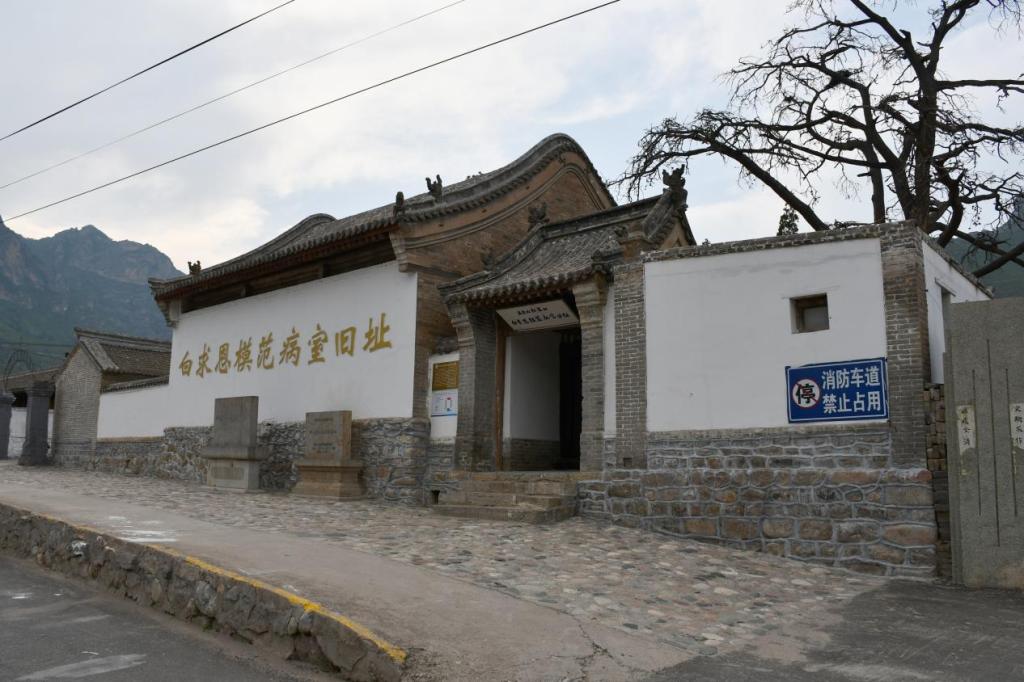 1938年9月15日,白求恩模范病室正式建成,展開了一系列專業(yè)性醫(yī)療救治工作,培訓(xùn)出一批醫(yī)護(hù)人員。但由于日寇慘無人道的掃蕩,10月上旬,病室在戰(zhàn)火中燒毀,僅存大門門樓和院內(nèi)一棵800多年的古松。