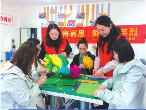 清明寄哀思,文明樹新風(fēng)。定襄縣南城社區(qū)組織工作人員與社區(qū)居民手工制作祭祀花,并免費向社區(qū)居民發(fā)放,引導(dǎo)大家摒棄燒紙陋習(xí),以環(huán)保、溫情的方式追思先人。圖為社區(qū)工作人員與居民一同制作手工祭祀花。 郭婧蕾攝 (責(zé)任編輯:梁艷) |